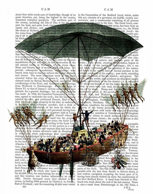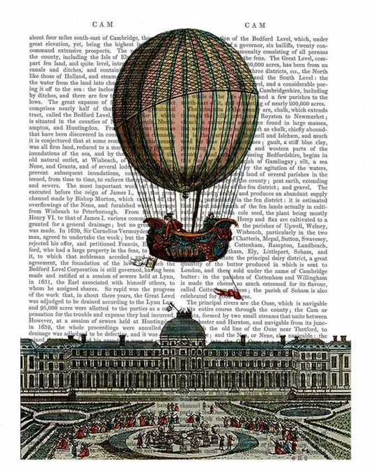 Machine Aerostatique Hot Air Balloon White Modern Wood Framed Art Print with Double Matting by Fab Funky