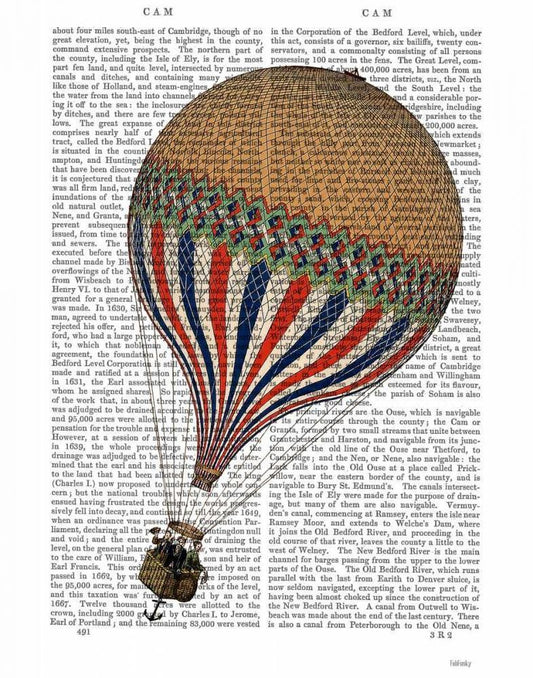 Montgolfier Aerostatique Hot Air Balloon White Modern Wood Framed Art Print with Double Matting by Fab Funky