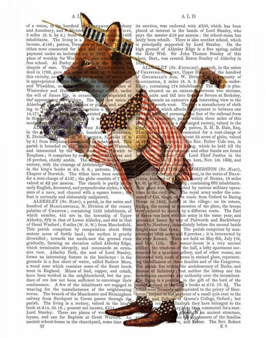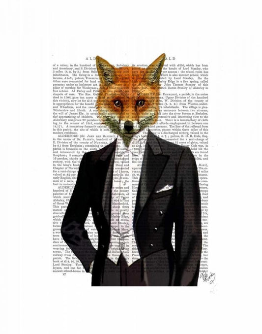 Fox In Evening Suit Portrait White Modern Wood Framed Art Print with Double Matting by Fab Funky