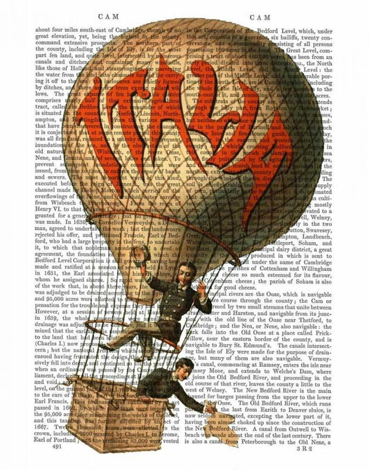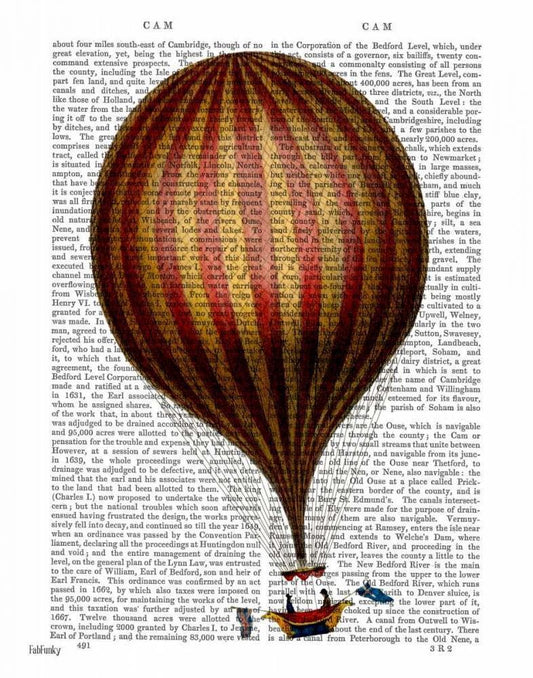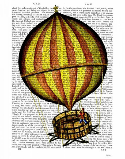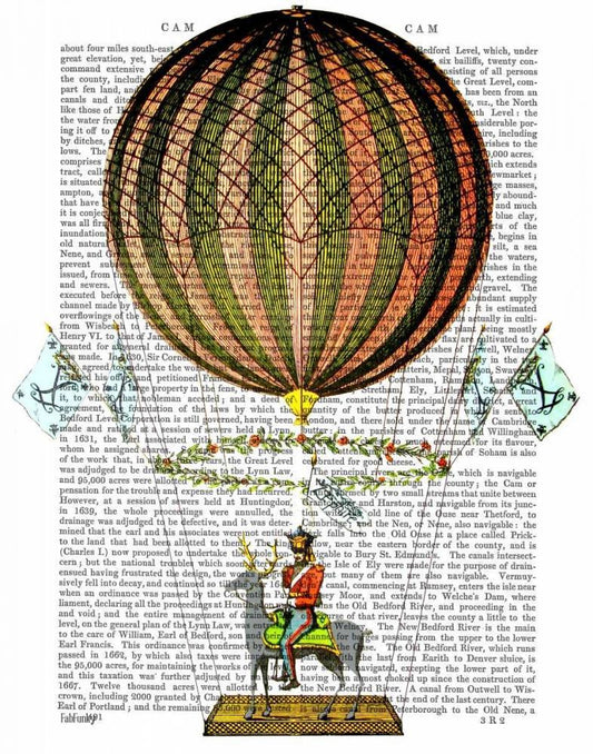Vaisseau Volant Hot Air Balloon White Modern Wood Framed Art Print with Double Matting by Fab Funky