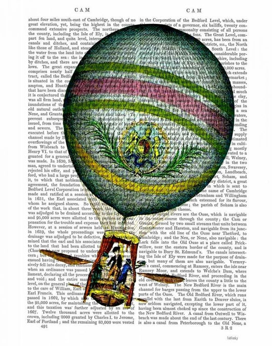 Hot Air Balloon With Tail Feather White Modern Wood Framed Art Print with Double Matting by Fab Funky
