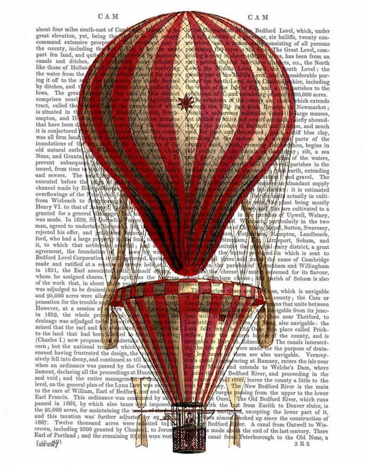 Tiered Hot Air Balloon Print Red White Modern Wood Framed Art Print with Double Matting by Fab Funky