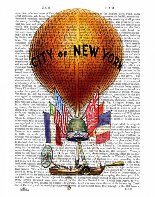 City of New York Hot Air Balloon White Modern Wood Framed Art Print with Double Matting by Fab Funky