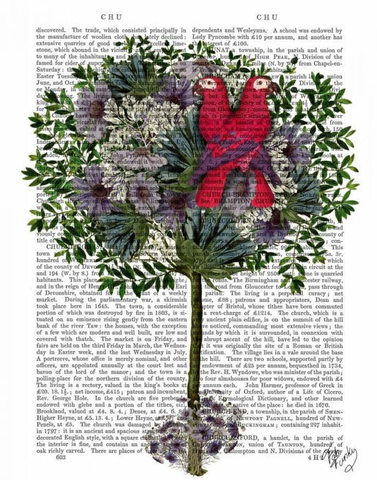 Deer and Love Birds White Modern Wood Framed Art Print with Double Matting by Fab Funky