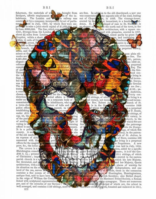 Butterfly Skull White Modern Wood Framed Art Print with Double Matting by Fab Funky