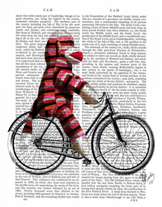 Sock Monkey on Bicycle White Modern Wood Framed Art Print with Double Matting by Fab Funky