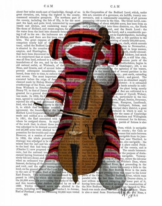 German Shepherd in Red Woolly Hat White Modern Wood Framed Art Print with Double Matting by Fab Funky