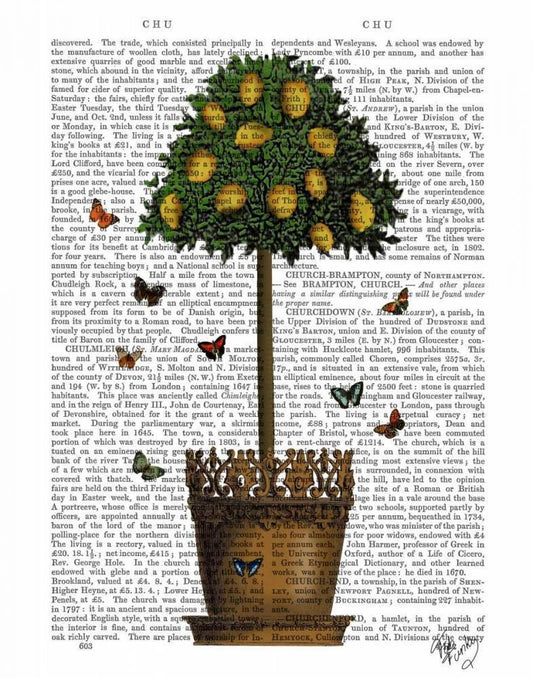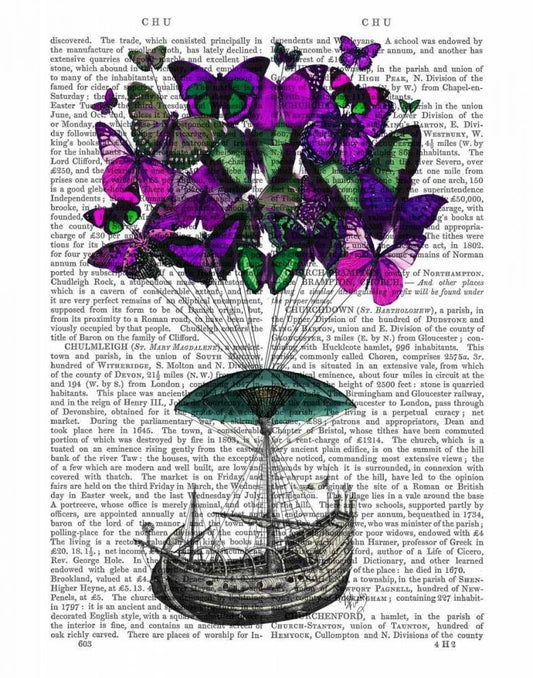Butterfly Airship 2 Purple and Green White Modern Wood Framed Art Print with Double Matting by Fab Funky