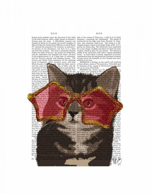 Kitten in Star Sunglasses White Modern Wood Framed Art Print with Double Matting by Fab Funky