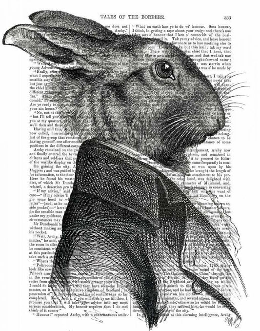 Rabbit Portrait Profile White Modern Wood Framed Art Print with Double Matting by Fab Funky