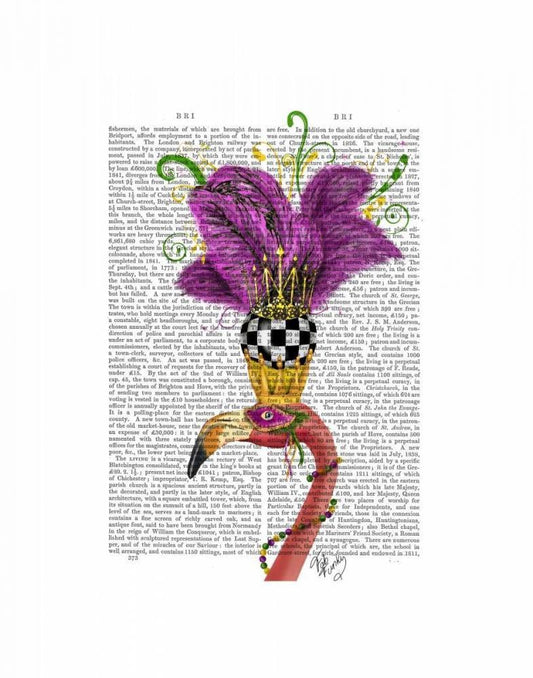 Mardi Gras Flamingo Full White Modern Wood Framed Art Print with Double Matting by Fab Funky