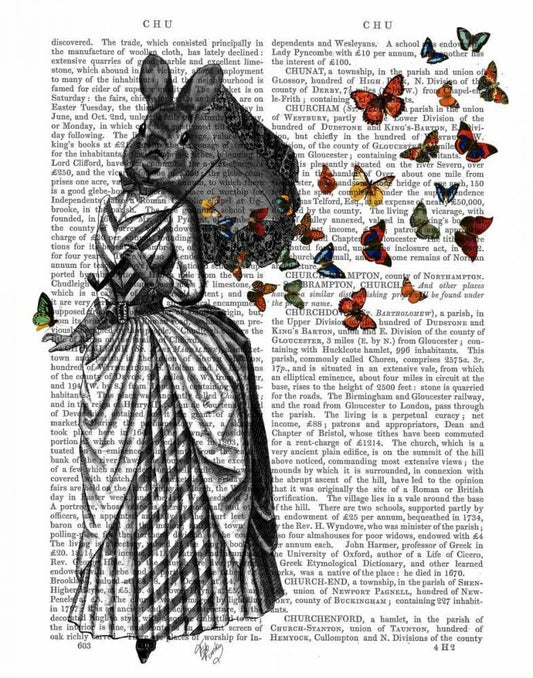 Rabbit Butterfly Dress White Modern Wood Framed Art Print with Double Matting by Fab Funky