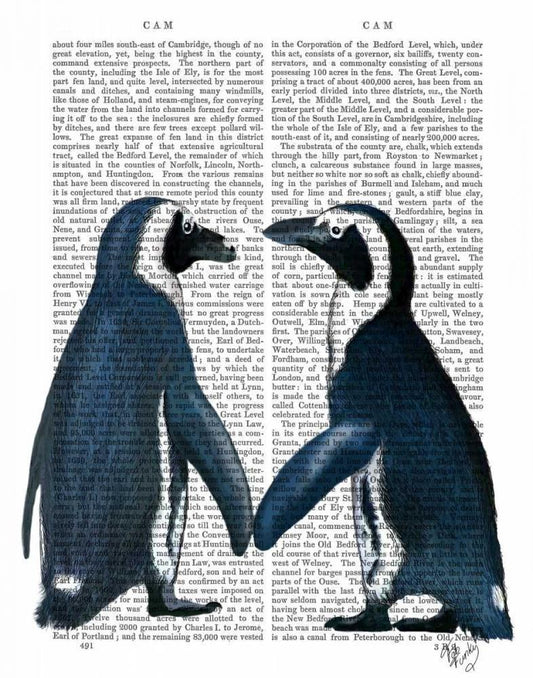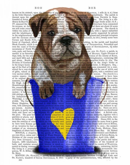 Bulldog Bucket Of Love Blue White Modern Wood Framed Art Print with Double Matting by Fab Funky