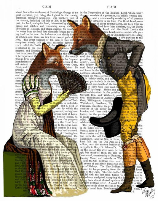 Foxes Courting White Modern Wood Framed Art Print with Double Matting by Fab Funky