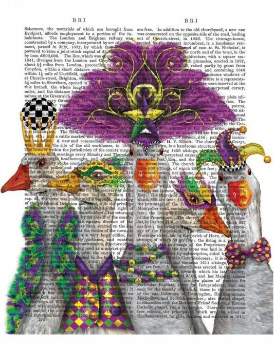 Mardi Gras Gaggle of Geese White Modern Wood Framed Art Print with Double Matting by Fab Funky