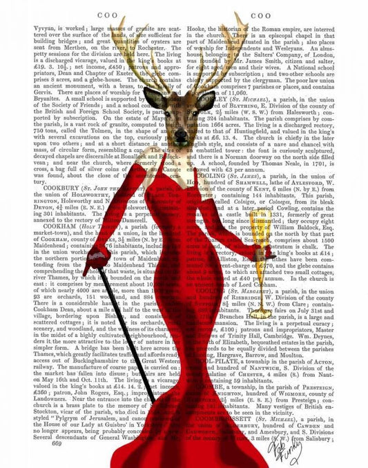 Dalmatian With Red Fascinator White Modern Wood Framed Art Print with Double Matting by Fab Funky
