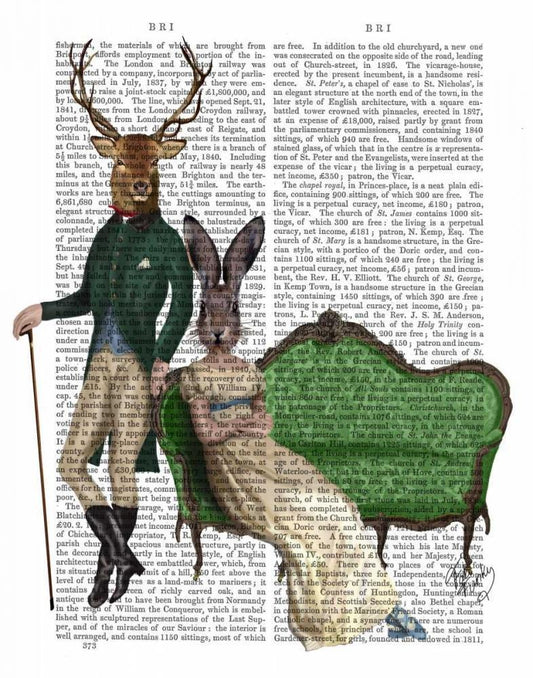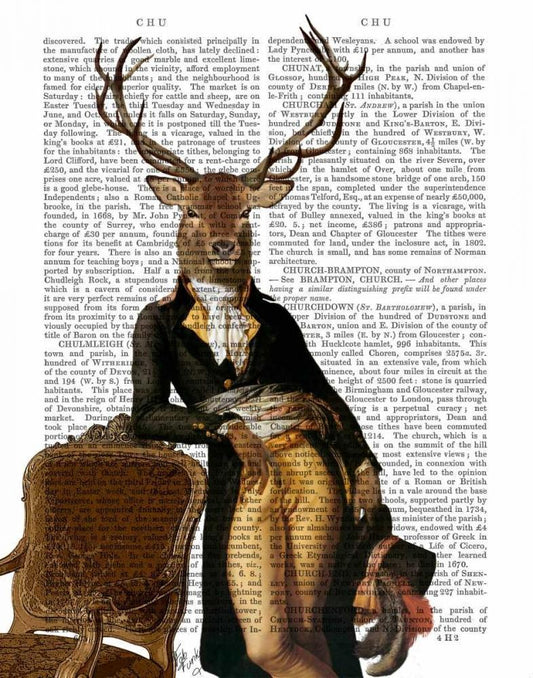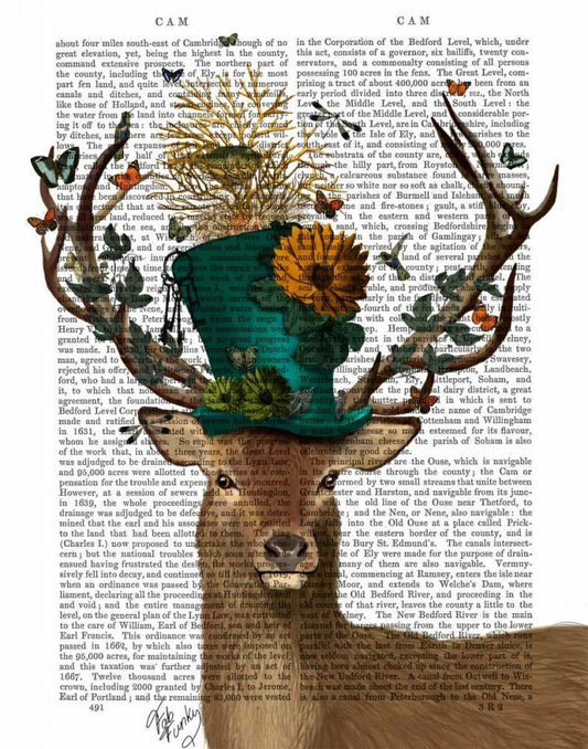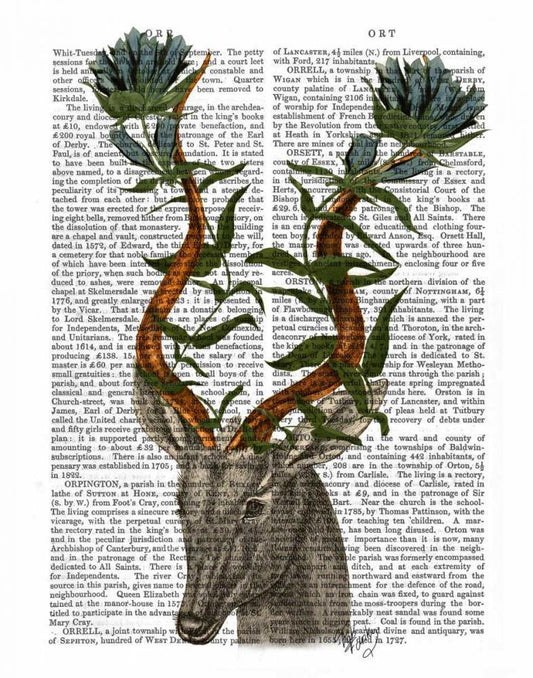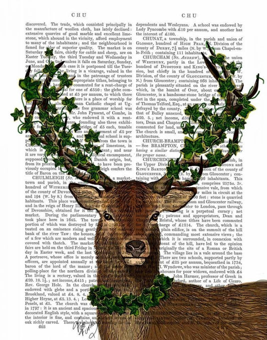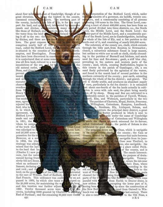 Mad Hatter Deer White Modern Wood Framed Art Print with Double Matting by Fab Funky