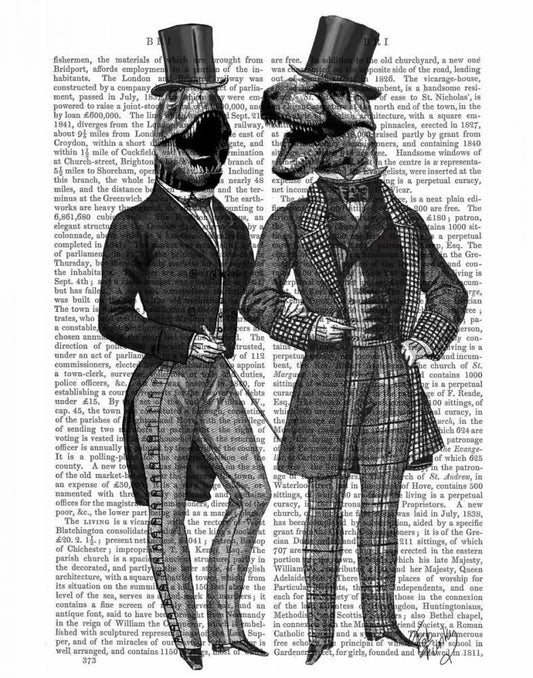 Dinosaur Men Lads Night Out White Modern Wood Framed Art Print with Double Matting by Fab Funky