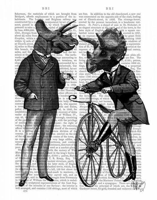 Triceratops Man on Bike Dinosaur White Modern Wood Framed Art Print with Double Matting by Fab Funky