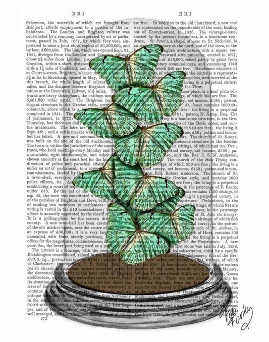 Green Butterflies in Bell Jar White Modern Wood Framed Art Print with Double Matting by Fab Funky