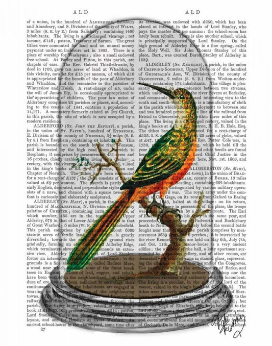 Vintage Grasshopper White Modern Wood Framed Art Print with Double Matting by Fab Funky