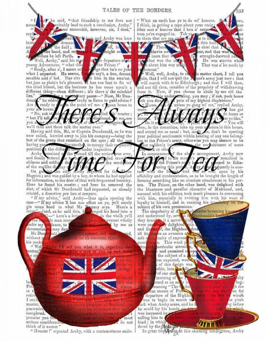 Time For Tea White Modern Wood Framed Art Print with Double Matting by Fab Funky