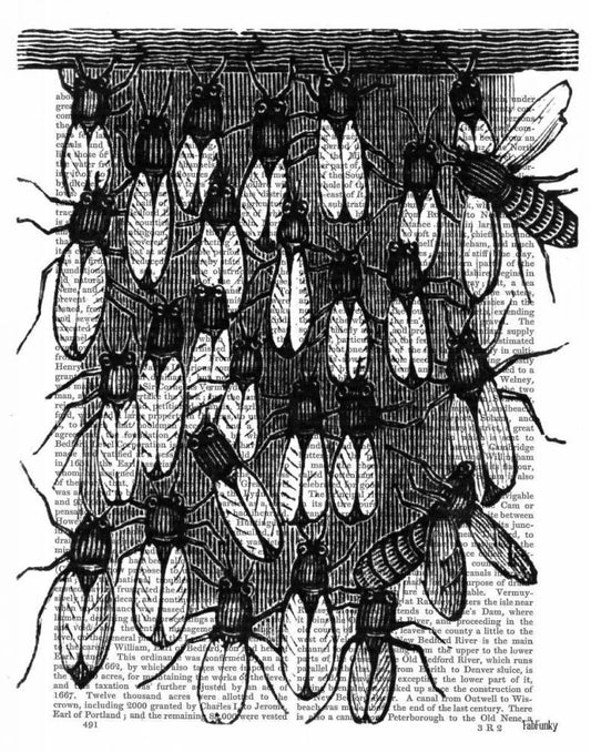 Medieval Bees White Modern Wood Framed Art Print with Double Matting by Fab Funky