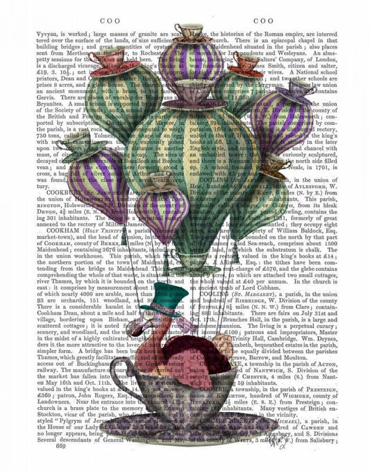 Cheshire Cat Hot Air Balloon White Modern Wood Framed Art Print with Double Matting by Fab Funky