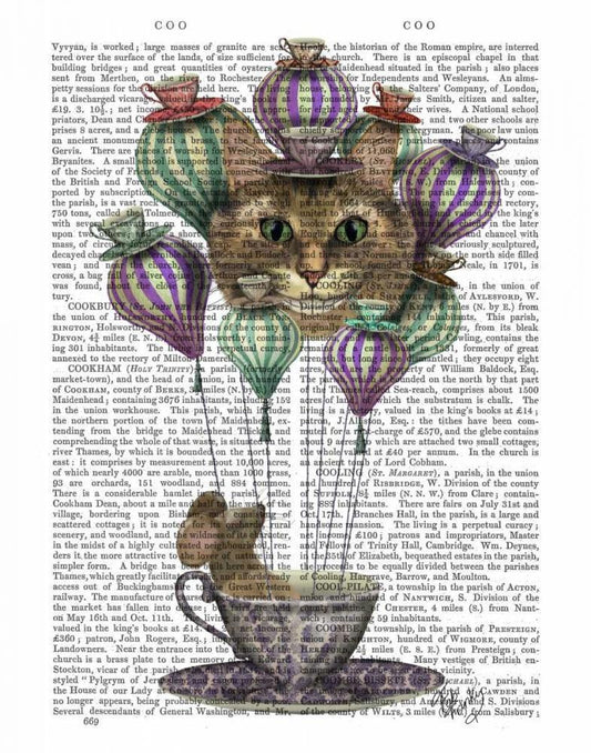 Cheshire Cat with Cup on Head White Modern Wood Framed Art Print with Double Matting by Fab Funky