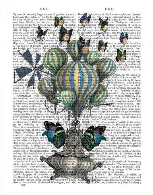 Bear with Book Butterflies White Modern Wood Framed Art Print with Double Matting by Fab Funky