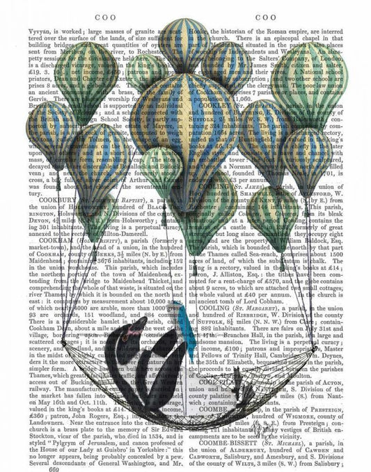 Hot Air Balloon and Birds White Modern Wood Framed Art Print with Double Matting by Fab Funky