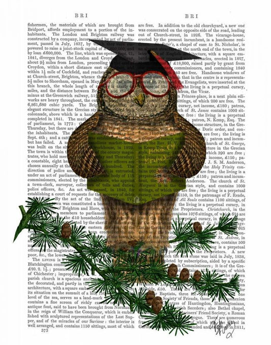 Owl Reading On Branch White Modern Wood Framed Art Print with Double Matting by Fab Funky