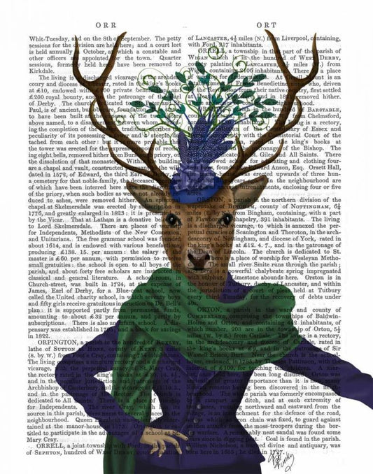 Deer and Fascinator White Modern Wood Framed Art Print with Double Matting by Fab Funky