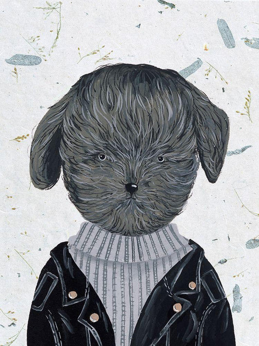 Hip Dog II White Modern Wood Framed Art Print with Double Matting by Wang, Melissa
