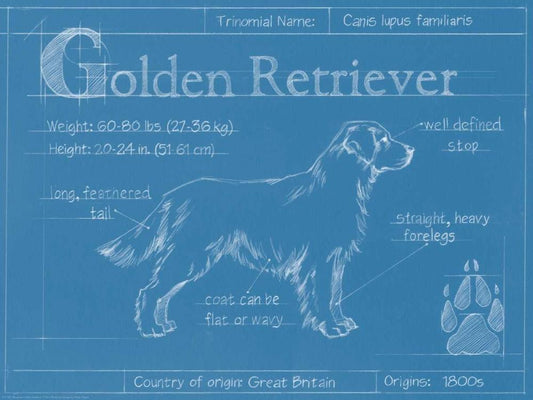 Blueprint Golden Retriever White Modern Wood Framed Art Print with Double Matting by Harper, Ethan