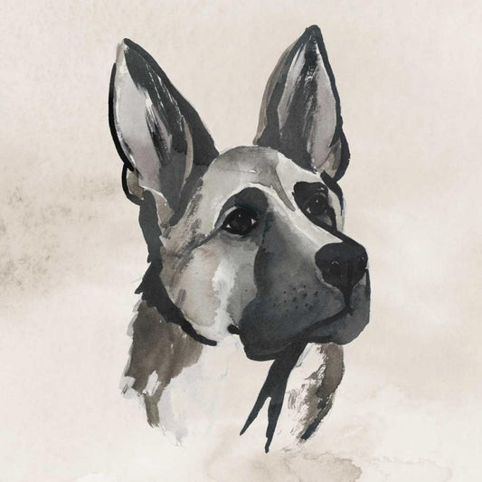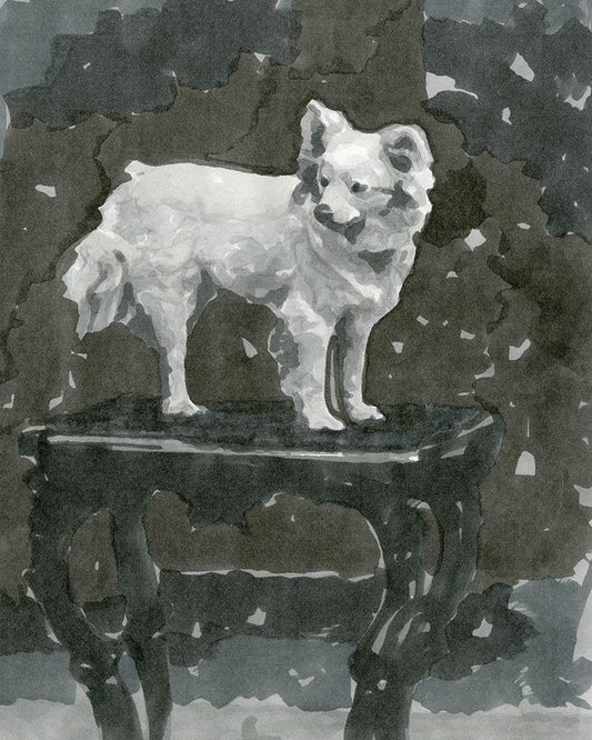 Dog Study II White Modern Wood Framed Art Print with Double Matting by Stellar Design Studio