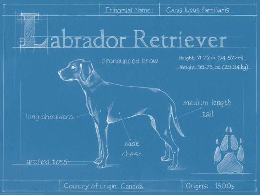 Blueprint Labrador Retriever White Modern Wood Framed Art Print with Double Matting by Harper, Ethan