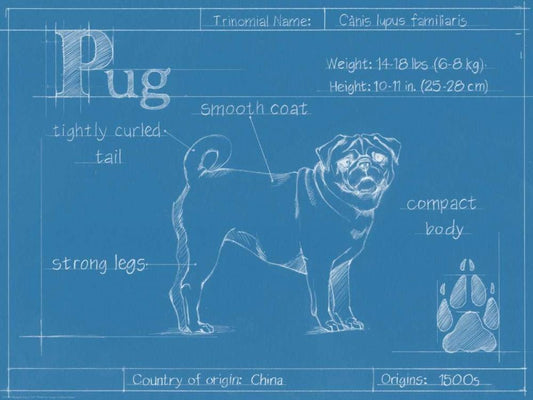 Blueprint Pug White Modern Wood Framed Art Print with Double Matting by Harper, Ethan