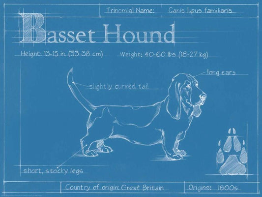 Blueprint Bassett Hound White Modern Wood Framed Art Print with Double Matting by Ethan Harper