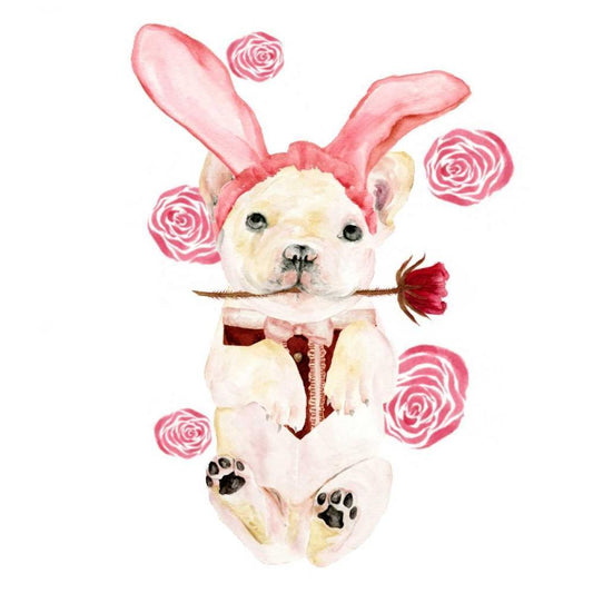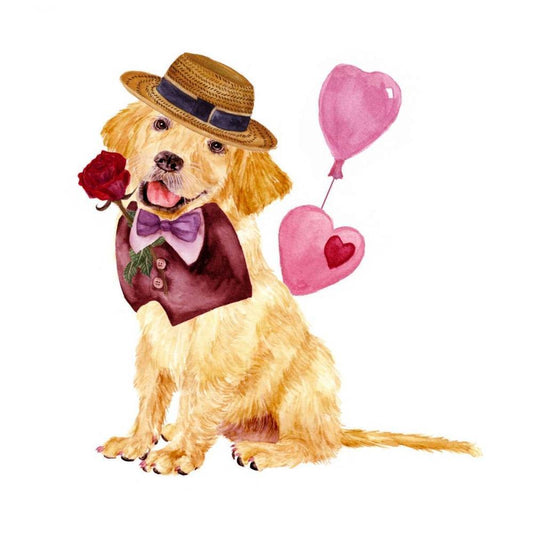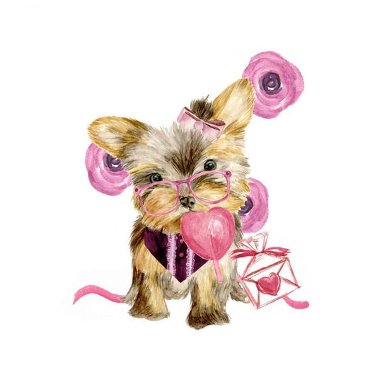 Valentine Puppy I White Modern Wood Framed Art Print with Double Matting by Wang, Melissa