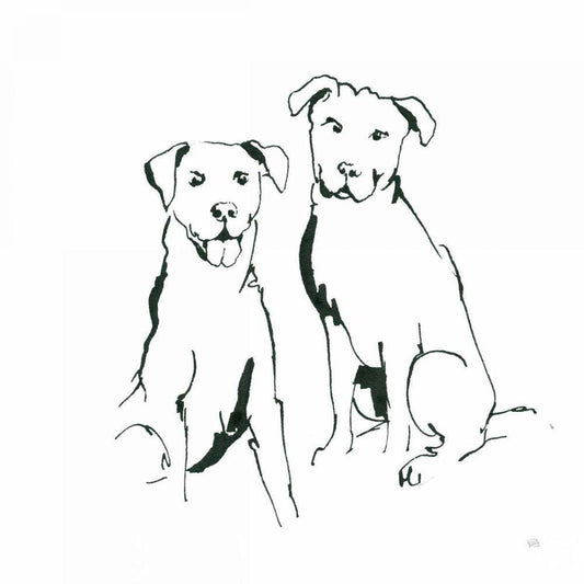 Line Dog Bulldog II White Modern Wood Framed Art Print with Double Matting by Paschke, Chris