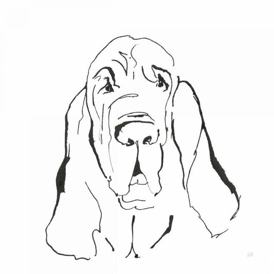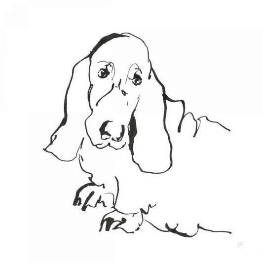 Line Dog Basset Hound White Modern Wood Framed Art Print with Double Matting by Paschke, Chris