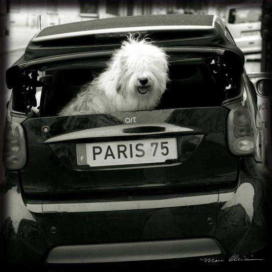 Paris Dog I White Modern Wood Framed Art Print with Double Matting by Olivier, Marc