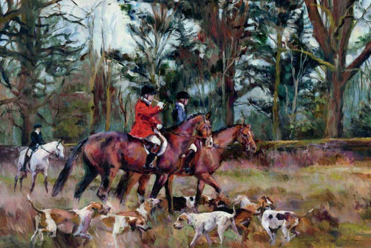 Foxhunt White Modern Wood Framed Art Print with Double Matting by Hageman, Marilyn