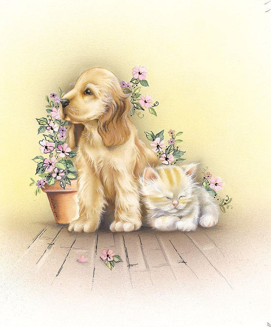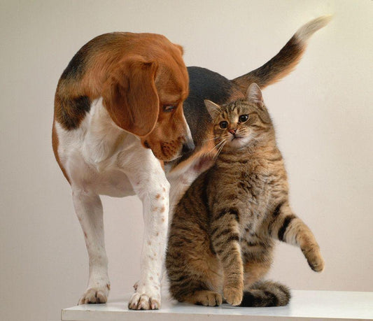 cat and dog White Modern Wood Framed Art Print with Double Matting by Hoenderkamp, Patrick