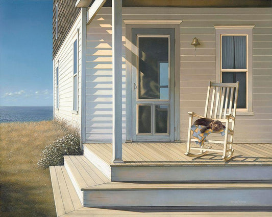 Tails on a Porch Swing White Modern Wood Framed Art Print with Double Matting by Saxe, Carol