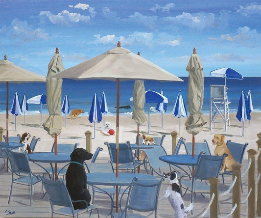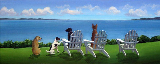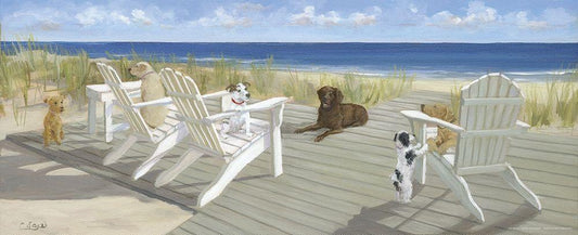 Dogs on a Deck White Modern Wood Framed Art Print with Double Matting by Saxe, Carol