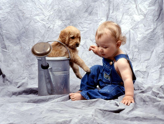 Puppies White Modern Wood Framed Art Print with Double Matting by Hoenderkamp, Patrick