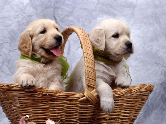 Puppies In Heart White Modern Wood Framed Art Print with Double Matting by Hoenderkamp, Patrick