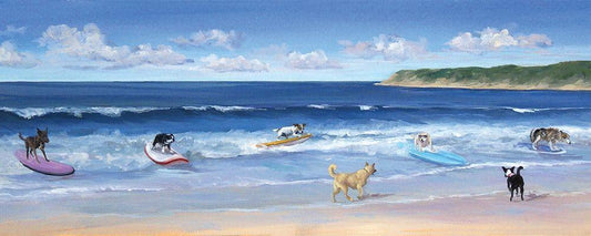 Hot Dogs Surf White Modern Wood Framed Art Print with Double Matting by Saxe, Carol